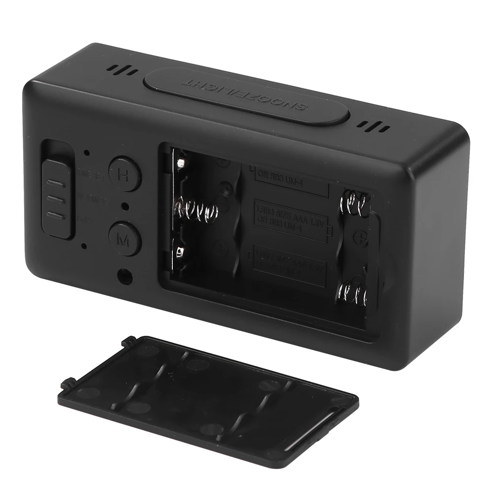 3. One group of alarm clock. Stir the "ALARM SET" button behind to SET the ALARM; H sets the time and M sets the minutes. To SNOOZE when the alarm goes off, press the top button to turn it on. If not operated, the alarm will stop automatically after 1 minute.